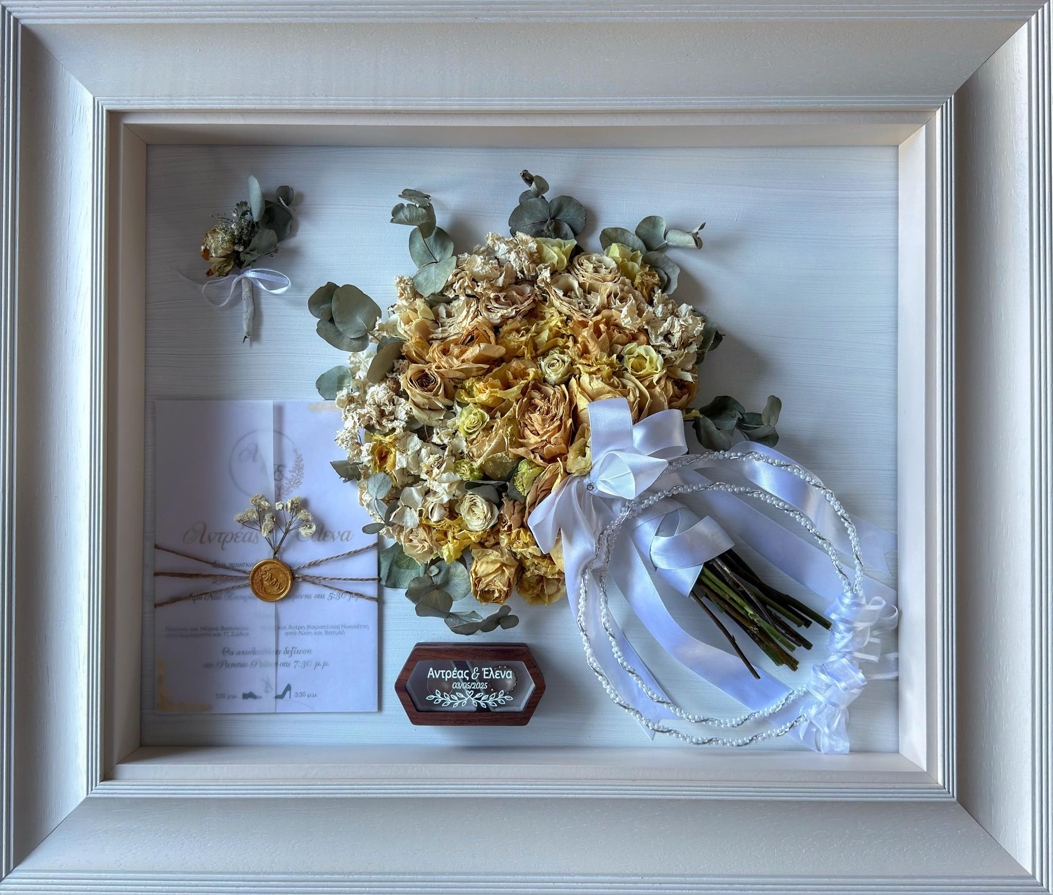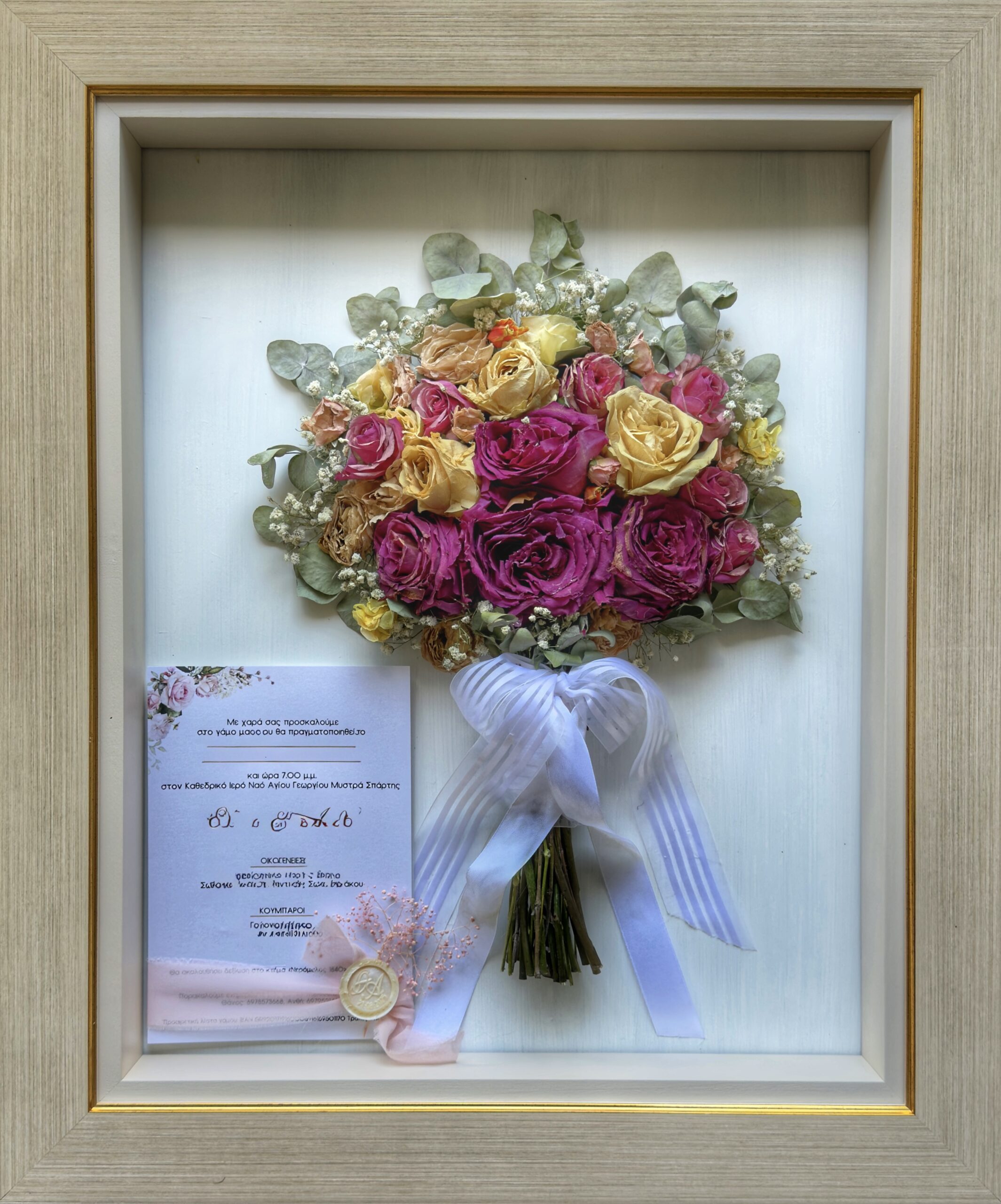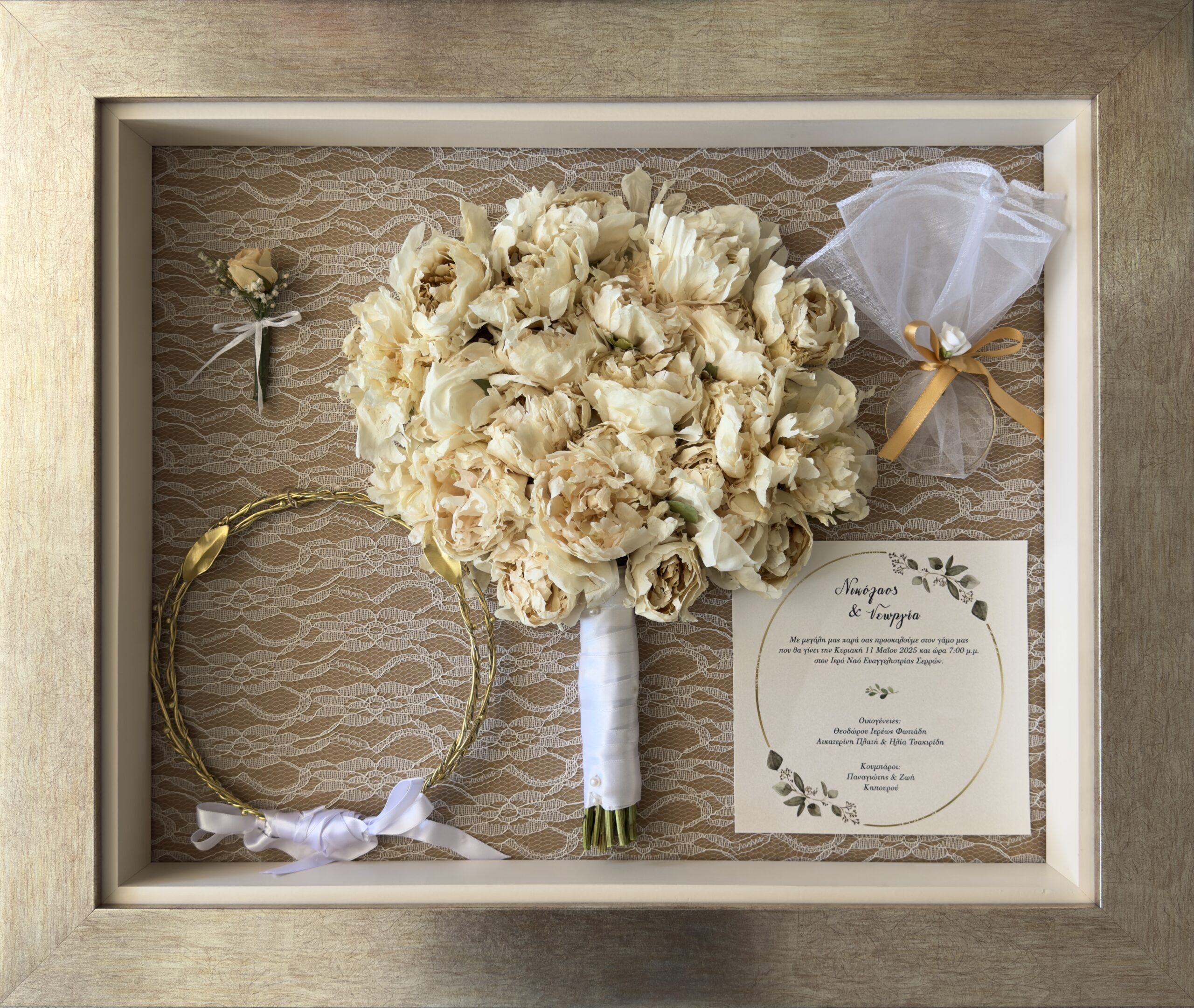 The Gisela workshop specializes exclusively in the professional preservation of bridal bouquets, with 35 years of experience and clients throughout Greece and Cyprus.